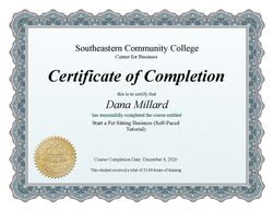 This course covered: Canine and feline body language, administering medications, pet first aid and emergencies, meet and greet procedures, plus information on the business side of a pet business.